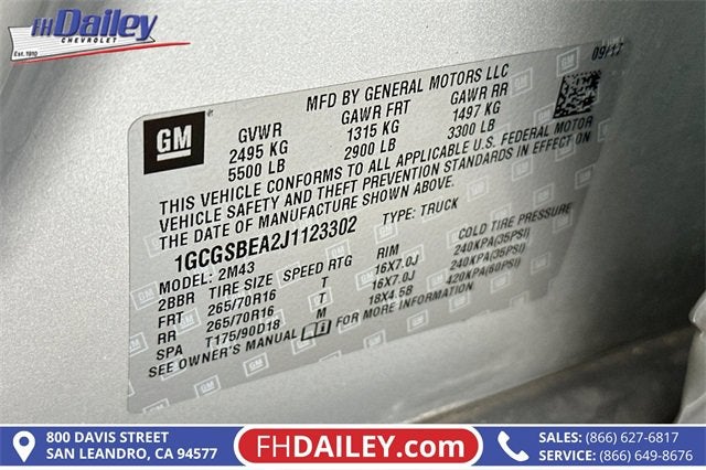 ?? 2018 Chevrolet Colorado Work Truck — The Little Truck With BIG Hustle! ??Say hello to the mid-size truck that punches way above its weight class — the 2018 Chevrolet Colorado Work Truck, now available at FH Dailey Chevrolet in San Leandro, CA! Whether you're making runs around town, loading up for weekend projects, or squeezing into tight parking spots that full-size trucks only dream about, this Colorado is your go-to sidekick.? Gets the Job Done (and Then Some)Powered by a 2.5L 4-cylinder engine delivering a confident 200 horsepower and 191 lb-ft of torque, this Colorado WT offers smooth, capable performance for everyday driving and light-duty hauling. [edmunds.com]Need to tow? No problem — with up to 7,000 lbs of towing capability, it’s more than ready to bring your trailer, tools, or toys along for the ride. [edmunds.com]??? Work Truck That’s Actually Fun to DrivePracticality meets personality with features like:Rear-wheel drive for predictable handlingA 74-inch bed for home-improvement hauls, business errands, or camping gear1,382 lbs of payload capacity — strong enough to carry what matters most[edmunds.com]This truck loves working hard… but it loves weekend getaways just as much.?? Simple Tech That Makes Life EasyInside, you get the essentials without the clutter:AM/FM audio with auxiliary inputPower features (locks, windows) depending on configurationComfortable seating for up to 4 passengersNothing fancy — just what you need to get in, get moving, and get things done.[edmunds.com]??? Safety You Can Count OnDrive confidently knowing this Colorado WT includes:Multiple airbagsStability and traction controlAnti-lock brakesA high-strength steel frame[kbb.com]It’s the dependable everyday truck you don’t have to think twice about.?? Sized Just RightNeed maneuverability? You got it. This Colorado is compact enough for tight Bay Area spots, but still delivers real-truck capability with:213-inch length74.3-inch width70.6-inch heightBalanced handling for city and highway driving[cars.usnews.com]?? Come Drive It Today!The 2018 Chevrolet Colorado Work Truck is the perfect blend of efficiency, practicality, and fun — all waiting for you at FH Dailey Chevrolet in San Leandro, CA.?? Call (866) 627-6817 to schedule your test drive now!