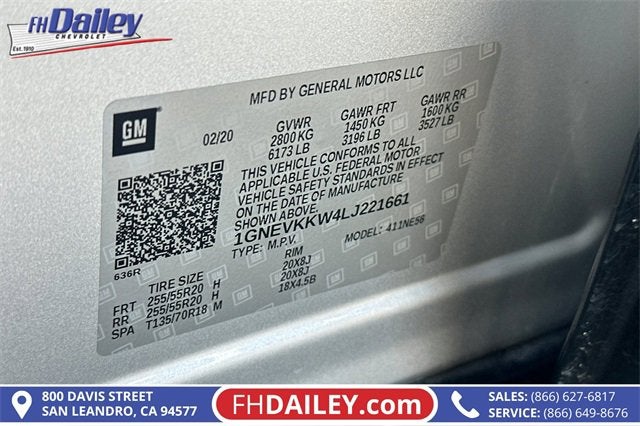 Ready to experience the 2020 Chevrolet Traverse Premier? Call us today at (866) 627-6817 or visit FH Dailey Chevrolet in San Leandro, CA to schedule your test drive. Your next adventure starts here!