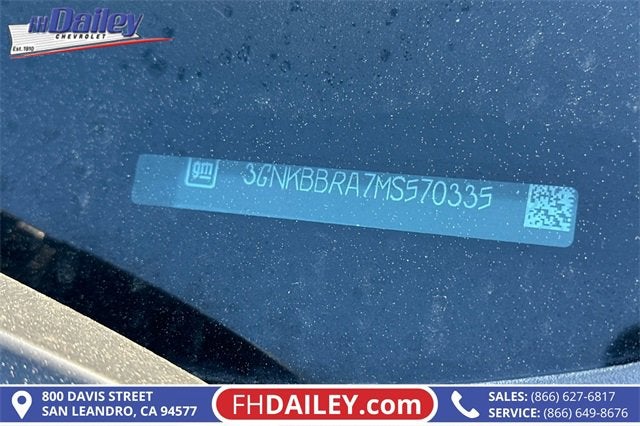 21/27 City/Highway MPG Iron Gray Metallic CARFAX One-Owner. Clean CARFAX.This vehicle is equipped with: Midnight/Sport Edition (Black Roof Rails, Front & Rear Black Bowtie Emblems (LPO), and Wheels: 18 Gloss Black Painted Aluminum), Preferred Equipment Group 1LT, 3.80 Final Drive Axle Ratio, 4-Wheel Disc Brakes, 6 Speakers, 6-Speaker Audio System Feature, ABS brakes, Air Conditioning, Alloy wheels, AM/FM radio: SiriusXM, Apple CarPlay/Android Auto, Automatic temperature control, Brake assist, Bumpers: body-color, Child-Seat-Sensing Airbag, Compass, Delay-off headlights, Driver door bin, Driver vanity mirror, Dual front impact airbags, Dual front side impact airbags, Electronic Stability Control, Emergency communication system: OnStar and Chevrolet connected services capable, Exterior Parking Camera Rear, Four wheel independent suspension, Front anti-roll bar, Front Bucket Seats, Front Center Armrest, Front dual zone A/C, Front reading lights, Fully automatic headlights, Heated door mirrors, High-Intensity Discharge Headlights, Illuminated entry, Knee airbag, Leather Shift Knob, Low tire pressure warning, Occupant sensing airbag, Outside temperature display, Overhead airbag, Overhead console, Panic alarm, Passenger door bin, Passenger vanity mirror, Power door mirrors, Power driver seat, Power steering, Power windows, Premium Cloth Seat Trim, Radio data system, Radio: Chevrolet Infotainment 3 System, Rear anti-roll bar, Rear reading lights, Rear seat center armrest, Rear window defroster, Rear window wiper, Remote keyless entry, Ride & Handling Suspension, Security system, SiriusXM Radio, Speed control, Speed-sensing steering, Split folding rear seat, Spoiler, Steering wheel mounted audio controls, Tachometer, Telescoping steering wheel, Tilt steering wheel, Traction control, Trip computer, Variably intermittent wipers, Voltmeter, and Wheels: 18 Bright Silver Aluminum Family Owned and Operated for Since 1910 FH Dailey Chevrolet has been serving San Leandro and the San Francisco, Oakland Bay Area since 1910. We work hard so you don't have too.