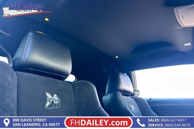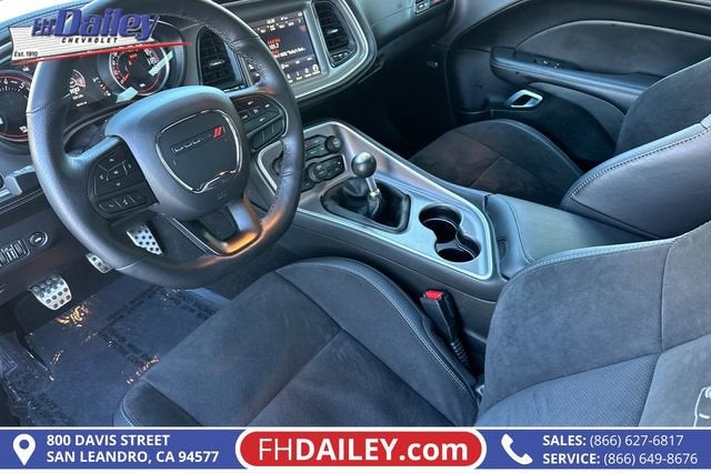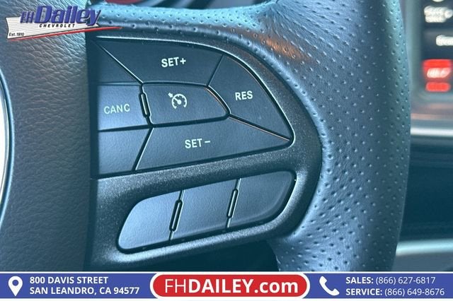 This vehicle is equipped with: Alpine Audio Group w/Subwoofer (506 Watt Amplifier, 9 Amplified Speakers w/Subwoofer, and Surround Sound), Driver Convenience Group (Blind Spot & Cross Path Detection, Body Color Exterior Mirrors, Exterior Mirrors w/Heating Element, High-Intensity Discharge Headlamps, and Power Multi-Function Foldaway Mirrors), Dynamics Package (Brembo 6-Pot Fixed Front Caliper Brakes and Flat-Bottom Steering Wheel), Plus Package (Door Trim Panel w/Ambient Lighting and Premium-Stitched Dash Panel), Quick Order Package 23G R/T Scat Pack, Technology Group (Auto High Beam Headlamp Control and Rain Sensitive Windshield Wipers), 1-Yr SiriusXM Guardian Trial, 4-Wheel Disc Brakes, 6 Speakers, ABS brakes, Adaptive Damping Suspension, Air Conditioning, Alloy wheels, AM/FM radio: SiriusXM, Anti-whiplash front head restraints, Apple CarPlay, Apple CarPlay/Android Auto, Auto-dimming Rear-View mirror, Automatic temperature control, Brake assist, Bumpers: body-color, Compass, Compass Gauge, Delay-off headlights, Driver door bin, Driver vanity mirror, Dual front impact airbags, Dual front side impact airbags, Electronic Stability Control, Emergency communication system: SiriusXM Guardian, For Details, Visit DriveUconnect.com, Four wheel independent suspension, Front anti-roll bar, Front Bucket Seats, Front Center Armrest, Front dual zone A/C, Front fog lights, Front License Plate Bracket, Front reading lights, Fully automatic headlights, Garage door transmitter, Google Android Auto, GPS Antenna Input, Heated door mirrors, Heated front seats, Heated steering wheel, Illuminated entry, Integrated Center Stack Radio, Integrated Voice Command w/Bluetooth®, Leather Shift Knob, Low tire pressure warning, Media Hub (2 USB, AUX), Outside temperature display, Overhead airbag, Overhead console, Panic alarm, ParkView Rear Back-Up Camera, Passenger door bin, Passenger vanity mirror, Power door mirrors, Power driver seat, Power steering, Power windows, Radio data system, Radio: Uconnect 4C w/8.4 Display, Rear anti-roll bar, Rear reading lights, Rear seat center armrest, Rear window defroster, Red Brake Calipers, Remote keyless entry, Scat Pack Logo Houndstooth Seat, Security system, SiriusXM Satellite Radio, Speed control, Speed-sensing steering, Split folding rear seat, Spoiler, Sport steering wheel, Steering wheel mounted audio controls, Tachometer, Telescoping steering wheel, Tilt steering wheel, Traction control, Trip computer, USB Host Flip, Variably intermittent wipers, Wheels: 20 x 9.0 Lo Gloss Granite Crystal, and Wheels: 20 x 9.5 Low Gloss Black Drag (DISC) Family Owned and Operated for Since 1910 FH Dailey Chevrolet has been serving San Leandro and the San Francisco, Oakland Bay Area since 1910. We work hard so you don't have too.