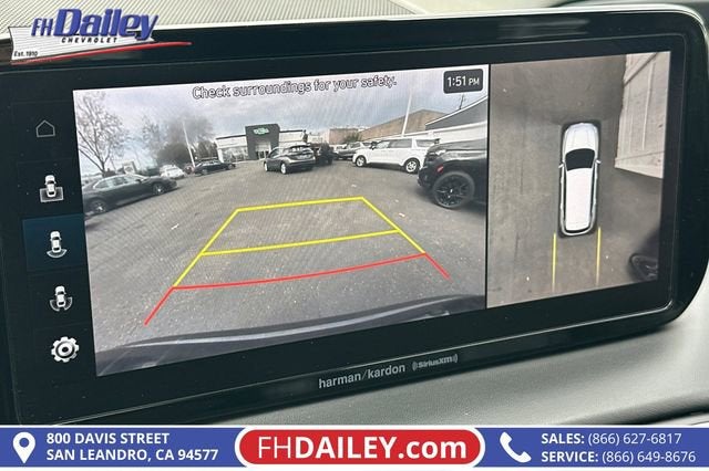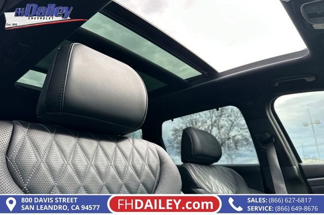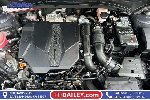 This vehicle is equipped with: Option Group 01, AWD, Black Leather, 12 Speakers, 4-Wheel Disc Brakes, ABS brakes, Air Conditioning, Alloy wheels, AM/FM radio: SiriusXM, Apple CarPlay & Android Auto, Auto High-beam Headlights, Auto-dimming Rear-View mirror, Automatic temperature control, Axle Ratio: 3.316, Brake assist, Bumper Applique, Bumpers: body-color, Cargo Cover/Screen, Cargo Net, Cargo Tray, Carpeted Floor Mats, Delay-off headlights, Driver door bin, Driver vanity mirror, Dual front impact airbags, Dual front side impact airbags, Electronic Stability Control, Emergency communication system, Exterior Parking Camera Rear, Four wheel independent suspension, Front anti-roll bar, Front Bucket Seats, Front Center Armrest, Front dual zone A/C, Front reading lights, Fully automatic headlights, Garage door transmitter: HomeLink, harman/kardon® Speakers, Heads-Up Display, Heated & Ventilated Front Bucket Seats, Heated door mirrors, Heated front seats, Heated rear seats, Heated steering wheel, Illuminated entry, Leather steering wheel, Low tire pressure warning, Memory seat, Navigation System, Occupant sensing airbag, Outside temperature display, Overhead airbag, Overhead console, Panic alarm, Passenger door bin, Passenger vanity mirror, Power door mirrors, Power driver seat, Power Liftgate, Power moonroof, Power passenger seat, Power steering, Power windows, Quilted Premium Nappa Leather Seat Trim, Radio: AM/FM Harman Kardon Display Audio, Rain sensing wipers, Rear anti-roll bar, Rear seat center armrest, Rear window defroster, Rear window wiper, Remote keyless entry, Security system, Speed control, Speed-sensing steering, Split folding rear seat, Spoiler, Steering wheel mounted audio controls, Tachometer, Telescoping steering wheel, Tilt steering wheel, Traction control, Trip computer, Turn signal indicator mirrors, Variably intermittent wipers, Ventilated front seats, Wheel Locks, and Wheels: 20 x 8.0J Alloy Family Owned and Operated for Since 1910 FH Dailey Chevrolet has been serving San Leandro and the San Francisco, Oakland Bay Area since 1910. We work hard so you don't have too.