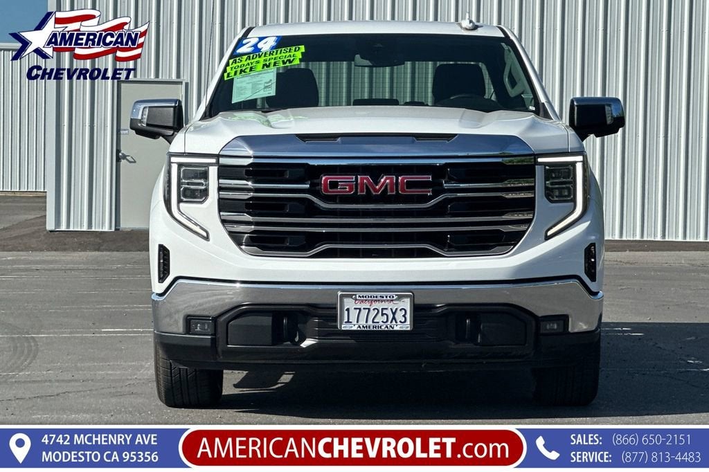 Summit White 2024 GMC Sierra 1500 SLT 4WD 10-Speed Automatic EcoTec3 5.3L V8 Sierra 1500 SLT, 4D Crew Cab, EcoTec3 5.3L V8, 10-Speed Automatic, 4WD, Summit White, Black Leather.