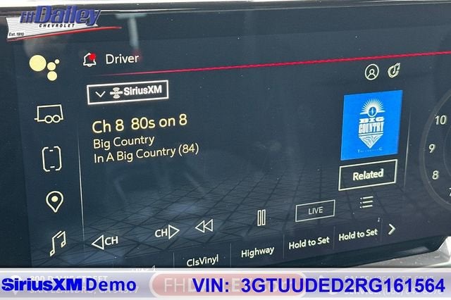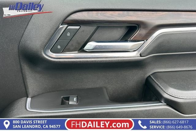 This vehicle is equipped with: Preferred Equipment Group 4SA (120-Volt Bed Mounted Power Outlet, 120-Volt Interior Power Outlet, 170 Amp Alternator, 2 Charge/Data USB Ports, 2 Type-C Charge-Only Rear USB Ports, 6-Speaker Audio System Feature, Auto-Locking Rear Differential, Auxiliary External Transmission Oil Cooler, Chrome Header & Chrome Grille Insert Bars, Color-Keyed Carpeting Floor Covering, Deep-Tinted Glass, Electric Rear-Window Defogger, Front Frame-Mounted Black Recovery Hooks, Front Rain-Sensing Wipers, GMC Connected Access Capable, HD Rear Vision Camera, Keyless Open & Start, LED Cargo Area Lighting, Manual Tilt-Wheel & Telescoping Steering Column, OnStar & GMC Connected Services Capable, Perimeter Lighting, Power Door Locks, Power Front Passenger Windows w/Express Up/Down, Power Front Windows w/Driver Express Up/Down, Power Rear Windows w/Express Down, Push Button Start, Rear Wheelhouse Liners, Remote Vehicle Starter System, SiriusXM w/360L, Steering Wheel Audio Controls, Theft Deterrent System (Unauthorized Entry), and Wi-Fi Hotspot Capable), Standard Suspension Package, Trailering Package (Hitch Guidance), 10-Speed Automatic, 4WD, Black Leather, 10-Way Power Driver Seat Adjuster w/Lumbar, 10-Way Power Passenger Seat Adjuster w/Lumbar, 3.23 Rear Axle Ratio, 4-Wheel Disc Brakes, 6 Speakers, ABS brakes, Air Conditioning, Alloy wheels, AM/FM radio: SiriusXM with 360L, Apple CarPlay/Android Auto, Auto High-beam Headlights, Auto-dimming door mirrors, Auto-dimming Rear-View mirror, Automatic Emergency Braking, Automatic temperature control, Brake assist, Buckle to Drive, Bumpers: chrome, Compass, Delay-off headlights, Deleted 3 Years of OnStar Remote Access, Driver door bin, Driver Memory, Driver vanity mirror, Dual front impact airbags, Dual front side impact airbags, Electronic Stability Control, Following Distance Indicator, Forward Collision Alert, Front 40/20/40 Split-Bench Seat, Front anti-roll bar, Front Center Armrest w/Storage, Front dual zone A/C, Front fog lights, Front License Plate Kit, Front Pedestrian Braking, Front reading lights, Front wheel independent suspension, Fully automatic headlights, Heated door mirrors, Heated Driver & Front Outboard Passenger Seating, Heated front seats, Heated steering wheel, Illuminated entry, IntelliBeam Automatic High Beam On/Off, Lane Keep Assist w/Lane Departure Warning, Low tire pressure warning, Memory seat, Navigation System, Occupant sensing airbag, Outside temperature display, Overhead airbag, Overhead console, Panic alarm, Passenger door bin, Passenger vanity mirror, Perf Leather-Appointed Front Outboard Seat Trim, Power door mirrors, Power driver seat, Power passenger seat, Power steering, Power windows, Premium audio system: GMC Infotainment System, Radio data system, Radio: Premium GMC Infotainment Audio System, Rain sensing wipers, Rear reading lights, Rear seat center armrest, Rear step bumper, Rear window defroster, Remote keyless entry, Security system, Speed control, Speed-sensing steering, Split folding rear seat, Steering wheel mounted audio controls, Tachometer, Telescoping steering wheel, Tilt steering wheel, Traction control, Trip computer, Variably intermittent wipers, Voltmeter, Wheels: 18 x 8.5 6-Spoke Machined Aluminum, and Wireless Apple CarPlay/Wireless Android Auto Family Owned and Operated for Since 1910 FH Dailey Chevrolet has been serving San Leandro and the San Francisco, Oakland Bay Area since 1910. We work hard so you don't have too.