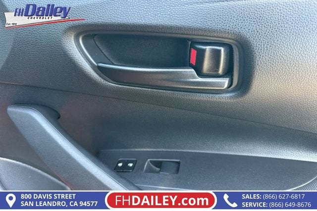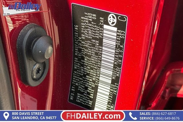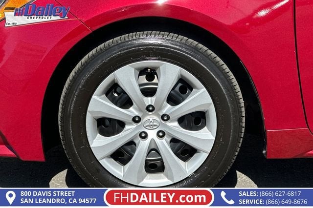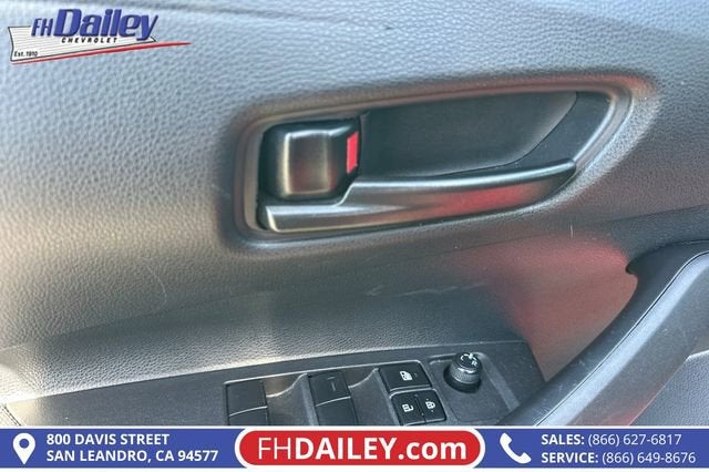 This vehicle is equipped with: 16 Steel Wheels w/Covers, 4-Wheel Disc Brakes, 6 Speakers, ABS brakes, Air Conditioning, AM/FM radio: SiriusXM, Auto High-beam Headlights, Automatic temperature control, Brake assist, Bumpers: body-color, Delay-off headlights, Driver door bin, Driver vanity mirror, Dual front impact airbags, Dual front side impact airbags, Electronic Stability Control, Emergency communication system: Safety Connect (up to 10-year trial subscription), Exterior Parking Camera Rear, Fabric Seat Trim, Front anti-roll bar, Front Bucket Seats, Front Center Armrest, Front reading lights, Front wheel independent suspension, Fully automatic headlights, Illuminated entry, Knee airbag, Low tire pressure warning, Occupant sensing airbag, Outside temperature display, Overhead airbag, Panic alarm, Passenger door bin, Passenger vanity mirror, Power door mirrors, Power steering, Power windows, Radio data system, Radio: 8 Toyota Audio Multimedia, Rear anti-roll bar, Rear seat center armrest, Rear side impact airbag, Rear window defroster, Remote keyless entry, Speed control, Split folding rear seat, Steering wheel mounted audio controls, Tachometer, Telescoping steering wheel, Tilt steering wheel, Traction control, and Trip computer Family Owned and Operated for Since 1910 FH Dailey Chevrolet has been serving San Leandro and the San Francisco, Oakland Bay Area since 1910. We work hard so you don't have too.