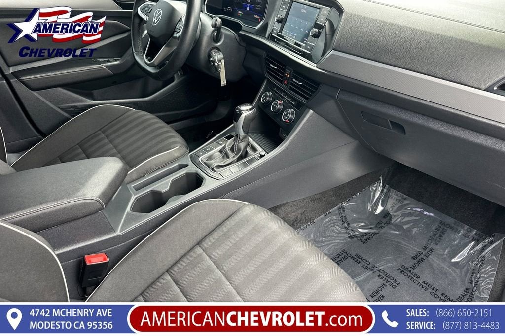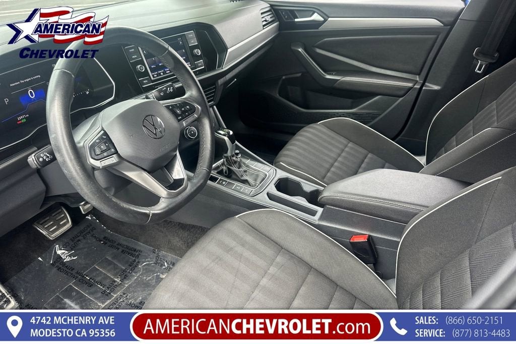 The 2024 Volkswagen Jetta 1.5T Sport FWD is a sleek, turbocharged sedan that delivers the perfect mix of efficiency, style, and everyday driving excitement. Powered by a 1.5L turbo engine producing 158 horsepower and 184 lb-ft of torque, it offers smooth acceleration, confident highway passing power, and outstanding fuel economy—up to 42 MPG on the highway. Inside, the Sport trim brings a clean, modern cabin with a driver-focused layout, touchscreen infotainment, Apple CarPlay/Android Auto, and advanced safety features like blind-spot monitoring and lane assist. Compact on the outside but roomy inside, it’s practical without feeling basic, sporty without being extreme. This Jetta is built for drivers who want comfort, confidence, and a little thrill in every mile.