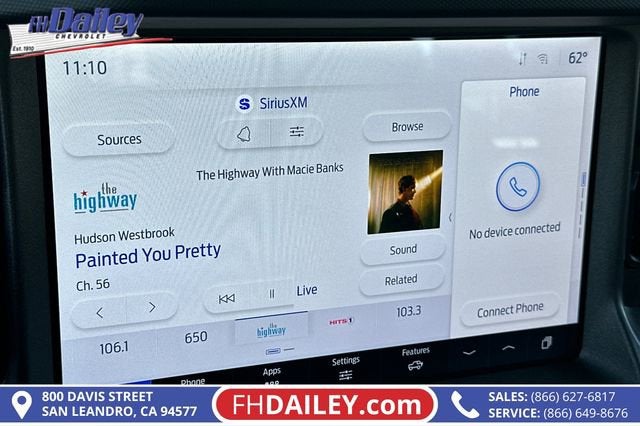 This vehicle is equipped with: Equipment Group 101A, 4-Wheel Disc Brakes, 4.46 Axle Ratio, 7 Speakers, ABS brakes, Air Conditioning, AM/FM radio: SiriusXM with 360L, AM/FM Stereo, Auto High-beam Headlights, Brake assist, Cloth Bucket Seats, Compass, Delay-off headlights, Driver door bin, Driver vanity mirror, Dual front impact airbags, Dual front side impact airbags, Electronic Stability Control, Emergency communication system: 911 Assist, Exterior Parking Camera Rear, Front anti-roll bar, Front Bucket Seats, Front Center Armrest, Front License Plate Bracket, Front reading lights, Front wheel independent suspension, Fully automatic headlights, Heated door mirrors, Illuminated entry, Integrated roll-over protection, Internet access capable: FordPass Connect, Low tire pressure warning, Occupant sensing airbag, Outside temperature display, Overhead airbag, Overhead console, Panic alarm, Passenger door bin, Passenger vanity mirror, Power door mirrors, Power steering, Power windows, Radio data system, Remote keyless entry, Security system, SiriusXM w/360L, Speed control, Split folding rear seat, Steering wheel mounted audio controls, SYNC 4, Tachometer, Telescoping steering wheel, Tilt steering wheel, Traction control, Trip computer, Variably intermittent wipers, and Wheels: 16 Bright Polished Silver-Painted Steel Family Owned and Operated for Since 1910 FH Dailey Chevrolet has been serving San Leandro and the San Francisco, Oakland Bay Area since 1910. We work hard so you don't have too.