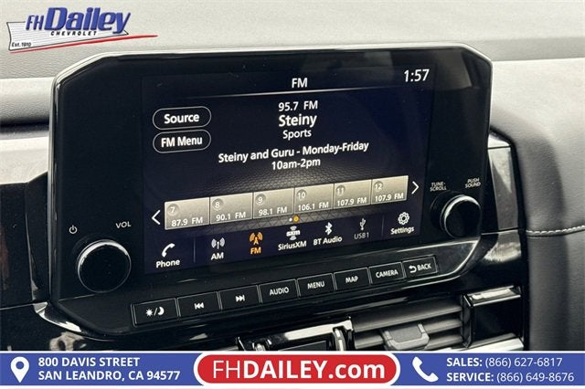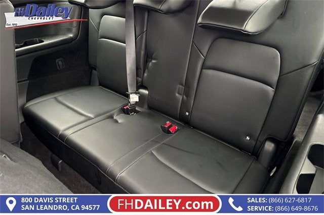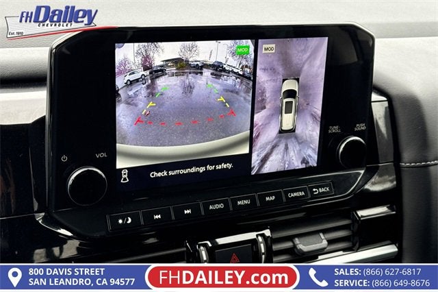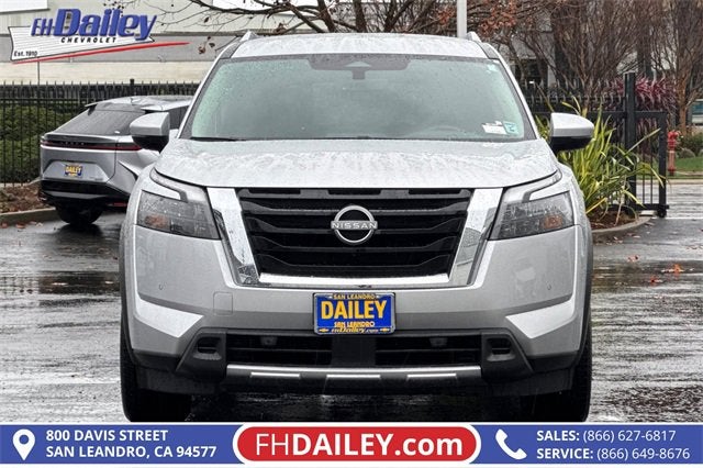 This vehicle is equipped with: 4WD, 3rd row seats: bench, 4-Wheel Disc Brakes, 6 Speakers, ABS brakes, Air Conditioning, Alloy wheels, AM/FM radio: SiriusXM, Auto High-beam Headlights, Auto-dimming Rear-View mirror, Automatic temperature control, Bench Seat Carpeted Floor Mats (set of 4), Brake assist, Bumpers: body-color, Delay-off headlights, Driver door bin, Driver vanity mirror, Dual front impact airbags, Dual front side impact airbags, Electronic Stability Control, Emergency communication system, Exterior Parking Camera Rear, Four wheel independent suspension, Front anti-roll bar, Front Bucket Seats, Front Center Armrest, Front dual zone A/C, Front reading lights, Fully automatic headlights, Garage door transmitter: HomeLink, Heated door mirrors, Heated Front Bucket Seats, Heated front seats, Heated steering wheel, Illuminated entry, Knee airbag, Leather steering wheel, Leather-Appointed Seating Surfaces, Low tire pressure warning, Navigation system: NissanConnect with Navigation and Services, NissanConnect featuring Apple CarPlay and Android Auto, NissanConnect with Navigation and Services, Occupant sensing airbag, Outside temperature display, Overhead airbag, Overhead console, Panic alarm, Passenger door bin, Passenger vanity mirror, Power door mirrors, Power driver seat, Power Liftgate, Power passenger seat, Power steering, Power windows, Radio data system, Radio: AM/FM Audio System, Rear air conditioning, Rear anti-roll bar, Rear reading lights, Rear seat center armrest, Rear side impact airbag, Rear window defroster, Rear window wiper, Reclining 3rd row seat, Remote keyless entry, Security system, Speed control, Speed-sensing steering, Split folding rear seat, Spoiler, Steering wheel mounted audio controls, Tachometer, Telescoping steering wheel, Tilt steering wheel, Traction control, Trip computer, Turn signal indicator mirrors, Variably intermittent wipers, and Wheels: 18 x 8J Machined Alloy Family Owned and Operated for Since 1910 FH Dailey Chevrolet has been serving San Leandro and the San Francisco, Oakland Bay Area since 1910. We work hard so you don't have too.