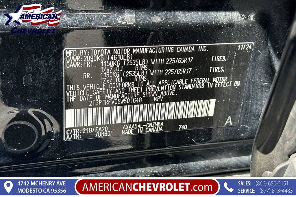 Midnight Black Metallic 2025 Toyota RAV4 XLE AWD 8-Speed Automatic 2.5L 4-Cylinder DOHC Dual VVT-i RAV4 XLE, 4D Sport Utility, 2.5L 4-Cylinder DOHC Dual VVT-i, 8-Speed Automatic, AWD, Midnight Black Metallic, Black w/Fabric Seat Trim.